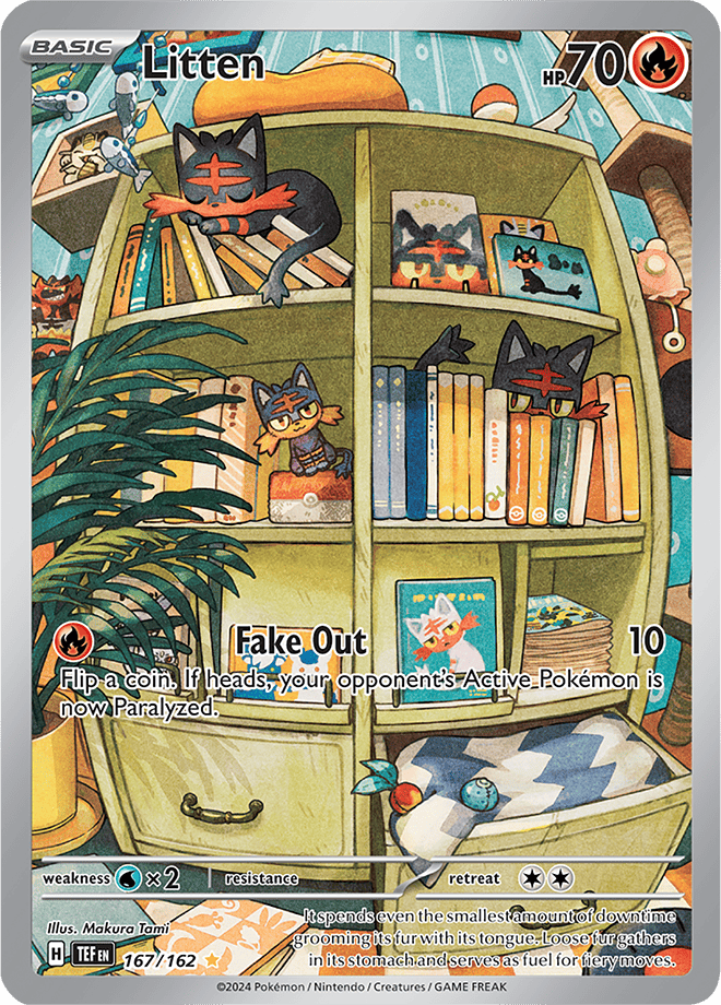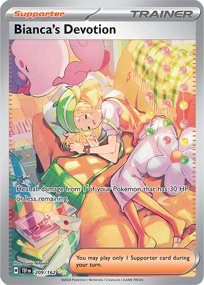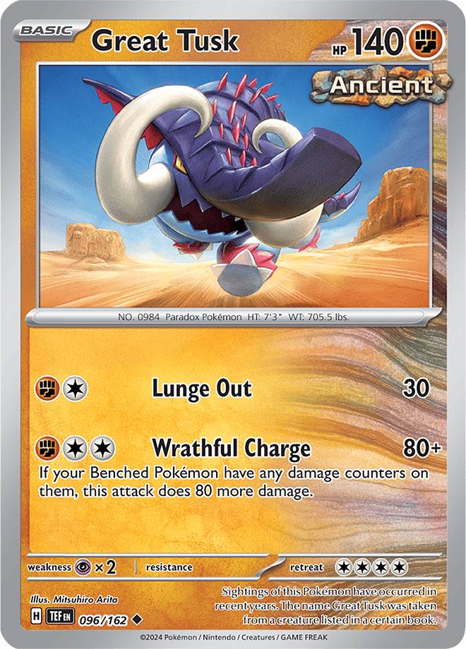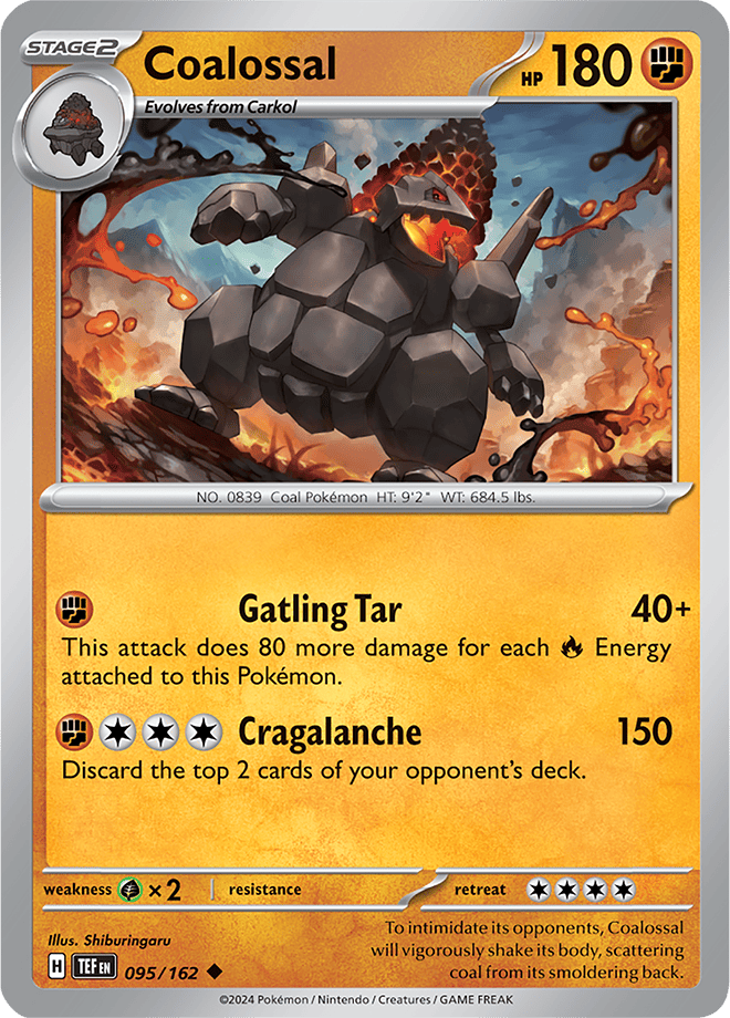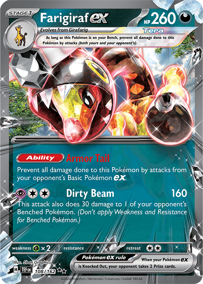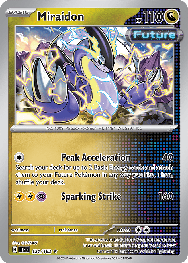 Pokemon Scarlet & Violet – Temporal Forces Card List Grass #1 Scyther #2 Pineco #3 Seedot #4 Nuzleaf #5 Shiftry #6 Shroomish #7 Breloom #8 Roselia #9 Roserade #10 Turtwig #11 Grotle #12 Torterra Ex #13 Shaymin #14 Cottonee #15 Whimsicott #16 Deerling #17 Sawsbuck #18 Grubbin #19 Dhelmise #20 Bramblin #21 Brambleghast #22 Scovillain Ex #23 Rellor #24 Rabsca #25 Iron Leaves Ex Fire #26 Ponyta #27 Rapidash #28 Slugma #29 Magcargo #30 Victini #31 Heatmor #32 Litten #33 Torracat #34 Incineroar Ex #35 Turtonator #36 Sizzlipede #37 Centiskorch #38 Gouging Fire Ex Water #39 Totodile #40 Croconaw #41 Feraligatr #42 Carvanha #43 Sharpedo #44 Keldeo #45 Snom #46 Frosmoth #47 Wiglett #48 Finizen #49 Palafin #50 Walking Wake Ex Lightning #51 Pikachu #52 Raichu #53 Electabuzz #54 Electivire #55 Charjabug #56 Vikavolt #57 Zeraora #58 Yamper #59 Boltund #60 Wugtrio #61 Iron Hands #62 Iron Thorns Psychic #63 Mr. Mine #64 Marill #65 Azumarill #66 Girafarig #67 Latias #68 Bronzor #69 Bronzong #70 Solosis #71 Duosion #72 – Reuniclus #73 Elgyem #74 Beheeyem #75 Cutiefly #76 Ribombee #77 Scream Tail #78 Flutter Man #79 Iron Valiant #80 Iron Valiant #81 Iron Crown Ex Fighting #82 Meditite #83 Medicham #84 Relicanth #85 Drilbur #86 Excadrill #87 Golette #88 Golurk #89 Rockruff #90 Lycanroc #91 Mudbray #92 Mudsdale #93 Rolycoly #94 Carkol #95 Coalossal #96 – Great Tusk #97 Great Tusk #98 Sandy Shocks #99 Iron Boulder Ex Darkness #100 Ekans #101 Arbok #102 Gastly #103 Haunter #104 Gengar Ex #105 Poochyena #106 Mightyena #107 Sableye #108 Farigiraf #109 Roaring Moon Metal #110 Forretress #111 Scizor Ex #112 Mawile #113 Beldum #114 Metang #115 Metagross #116 Meltan #117 Melmetal #118 Iron Treads Dragon #119 Koraidon #120 Koraidon Ex #121 Miraidon #122 Miraidon Ex #123 Raging Bolt Ex Colorless #124 Lickitung #125 Lickilicky #126 Hoothoot #127 Noctowl #128 Dunsparce #129 Dudunsparce #130 Skitty #131 Delcatty #132 Chato #133 Pidove #134 Tranquil #135 Unfezant #136 Minccino #137 Cinccino #138 Drampa 139 Iron Jugulis Trainers #140 Ancient Booster Energy Capsule #141 Awakening Drum #142 Bianca’S Devotion #143 Boxed Order #144 Buddy-Buddy Poffin #145 Ciphermaniac’S Codebreaking #146 Eri #147 Explorer’S Guidance #148 Full Metal Lab #149 Future Booster Energy Capsule #150 Hand Trimmer #151 Heavy Baton #152 Hero’S Cape #153 Master Ball #154 Maximum Belt #155 Mortys Conviction #156 Perilous Jungle #157 Prime Catcher #158 Reboot Pod #159 Rescue Board #160 Salvatore Special Energy #161 Mist Energy #162 Neo Upper Energy Illustration Rare Pokemon #163 Shiftry #164 Grotle #165 Deerling #166 Sawsbuck #167 Litten #168 Snom #169 Charjabug #170 Bronzor #171 Reuniclus #172 Cutiefly 173 Relicanth #174 Excadrill #175 Mudsdale #176 Arbok #177 Gastly #178 Metagross #179 Meltan #180 Lickitung #181 Chatot #182 Minccino #183 Cinccino #184 Drampa Full Art Pokemon #185 Torterra Ex #186 Iron Leaves Ex Full Art Supporters #197 Biancas Devotion #198 Ciphermaniacs Codebreaking #199 Eri #200 Explorers Guidance #201 Mortys Conviction #202 Salvatore Special Illustration Rare Pokemon #203 Iron Leaves Ex #204 Gouging Fire Ex #205 Walking Wake Ex #206 Iron Crown Ex #207 Iron Boulder Ex #208 Raging Bolt Ex Special Illustration Rare Pokemon #209 Biancas Devotion #210 Eri #211 Mortys Conviction #212 Salvatore Hyper Rare Cards #213 Iron Leaves Ex #214 Gouging Fire Ex #215 Walking Wake Ex #216 Iron Crown Ex #217 Iron Boulder Ex #218 Raging Bolt Ex Cards Cut For Promos #185 Torterra Ex #186 Iron Leaves Ex